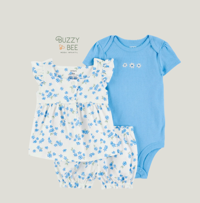 Esse Conjunto florido 3 peças azul | Carter’s é a união perfeita entre conforto, beleza e praticidade — tudo o que os papais precisam na rotina com os bebês. Com tecido macio e modelagem pensada para o bem-estar do pequeno, ele permite liberdade nos movimentos e muito aconchego em cada detalhe. Os designs facilitam na hora das trocas de fralda, especialmente nos dias mais corridos. Além de funcional, o conjunto é cheio de charme, com um visual delicado que deixa seu baby ainda mais fofo para qualquer ocasião. Ideal para passeios, sonecas ou momentos especiais em família.