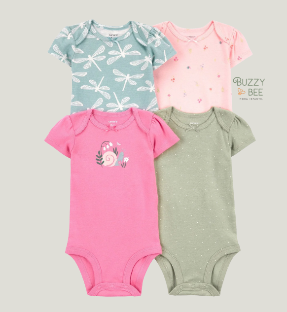 O Kit body bebê 4 peças manga curta beija-flor multicor | Carter’s é confeccionado em malha de ribana, o que permite que o body acompanhe o crescimento de sua bebê. Super prático para ser utilizado no dia a dia, a peça conta com abotoamento entrepernas, mangas longas, ombros transpassados e suas cores combinam com todos os momentos. A escolha certa para a sua neném!
