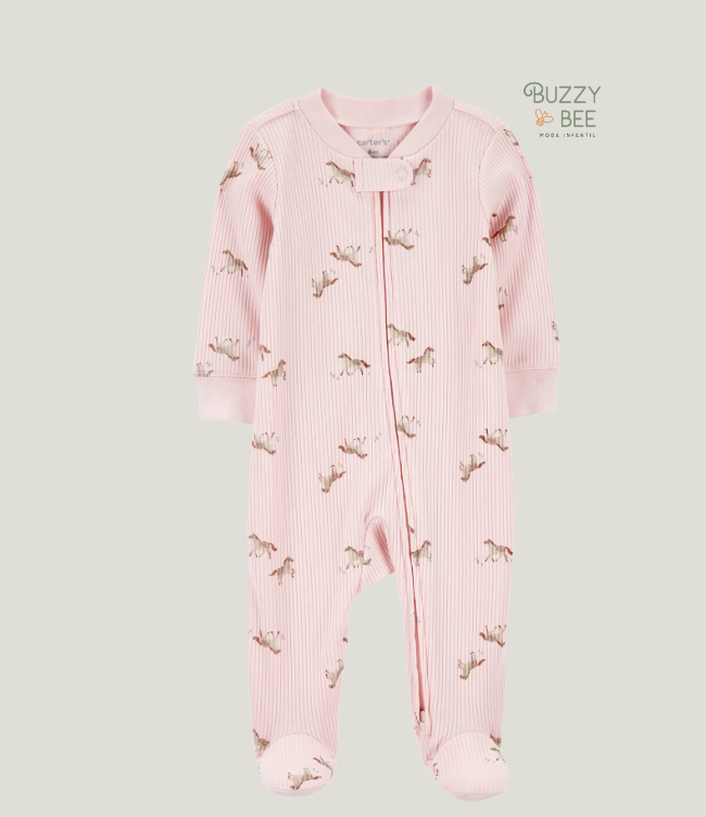 Super fofinho e confortável, o Macacão bebê manga longa com pezinho cavalo rosa | Carter’s será a pedida certa para seu neném. Feito em malha de algodão canelado, o macacão conta com fechamento por zíper inverso, possui martingale para garantir proteção e seu grande destaque está na estampa de cavalos. Seja descansando ou se divertindo com os papais, a peça é certeira para esses momentos tão lindos e únicos!